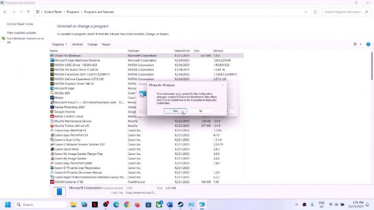 If you don't have Dess, you can skip this step, so type in the control panel, Go to the control panel and then uninstall a program. Now find dce in the list, so here you can see D for Windows. If this is installed, uninstall it, click yes, and let the uninstall complete. Once the uninstall is complete, restart your computer.