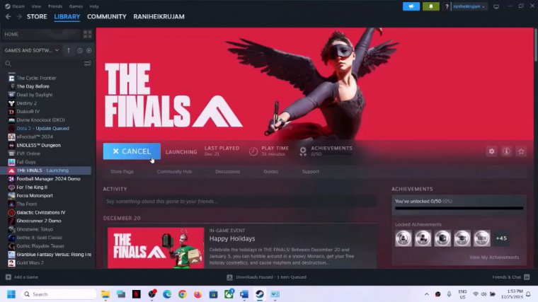 In this article, I'm going to show you how to fix the article memory error with the Finals game on your Windows computer. The first step is to try these in the launch options, so go to Steam. Make a right click on the game, select properties, and in the launch option type in dash, dx11, now close this, launch the game, and then check still not launching, then make a right click.