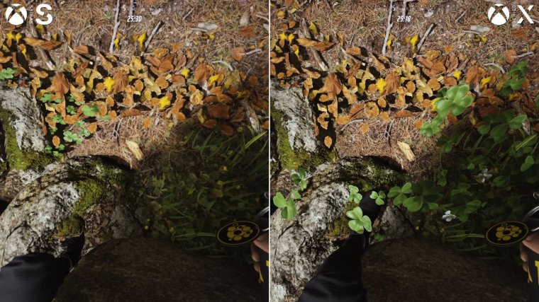 We get a matching 1440p to 4K range. A form of temporal upsampling is used to hit a 4K target, essentially. But that's with dynamic resolution scaling, which allows for a range of values in between based on GPU load. In truth, it's very uncommon for either machine to reach that maximum of 4K. Though it is possible by looking directly up at the sky, while Series S takes a visible hit, you get a range of 720p, up to 151 12p in instead here, which is a noticeable dip in image quality again that upper bounds 152p figure comes in during very rare, non-GPU-taxing moments, but for general play it rests at numbers in between, and the result is inevitably a less crisp image than the sibling series X and PS5.