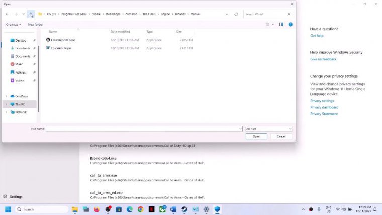 Go to the game installation folder. If the game is installed on the C drive, open the C drive program file 686. Now open the Steam folder. Now open the Steam apps. Folder, open the common folder over here, and you will find the game folder. Open the game folder and select all the exe files. Select it, then click on Open again.
