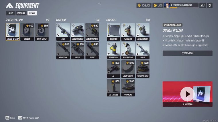 So that brings us over to the heavy class and this is going to be really kind of expensive, depending on what you're actually looking to be able to get out of the class now obviously once again similar to like the medium class we do have some really good stuff that you can actually use as a heavy class pretty much off the bat the M60 is a great weapon charge and slam is pretty good for being able to open up spaces or being able to find a way through a building so you can make a of a retreat the barricade is great if placed correctly the rpg7, is absolutely goated not only just for being able to One-Shot light classes if you're accurate with this but just being able to blow up buildings make it so difficult for being able to find your way into a cash out and we do also have things like grenades and frag grenades and all that kind of standard stuff, now from this kind of list you can improve so much more depending on what you're looking for to get out the class so what I'm actually going to suggest is I'm going to do two things that are going to be a more support-based.