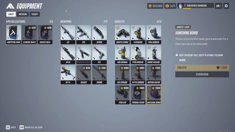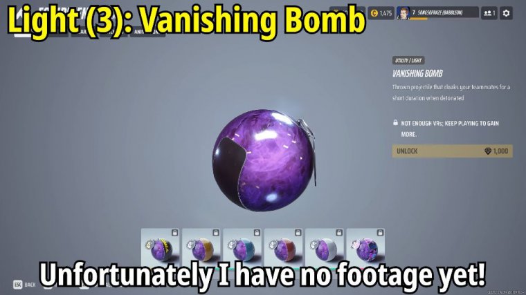 Now obviously things like Fred grenades things like flashbangs, the breach charge is pretty good for being able to find your way into a room but it's definitely going to be a weaker version than the C4, in terms of like any other kind of like grenades or anything you can use there's just not anything that's really impactful for like when you're inside of a fight it's great for starting a fight it's great for being able to make a choke point or something like that it's great for being able to, like just be able to mass some of your position so you can actually get in close but in terms of like everything else apart from the gas grenade which does some decent damage the vanishing bomb is pretty much your best go-to gadget that exists for this class and I highly recommend that you do once you do have that th000 points which obviously is a little bit more expensive than specializations and weapons that you do actually spend that those th000 vrs so you can pick up this gadget because it's going to be so influential, especially if you are running with some of the teammates and you are being doing coordinating, attacks.
